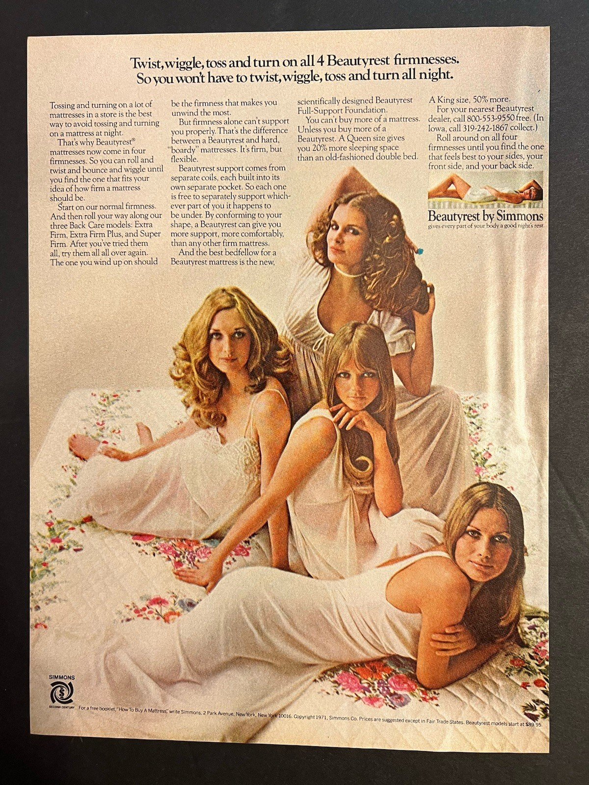 Vtg 1970s Ad-Simmons Beautyrest-Cheryl Tiegs and 3 Other Models in Lingerie