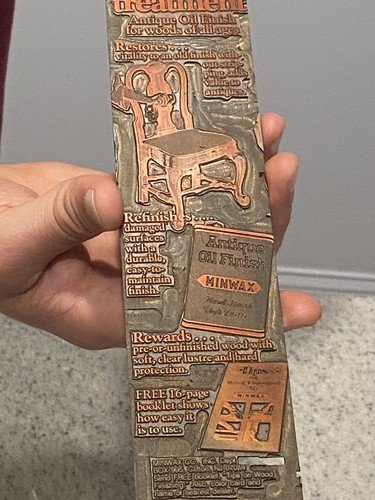 Vtg Antique Oil Finish Minwax Woodworking Copper Printing Plate Advertisement