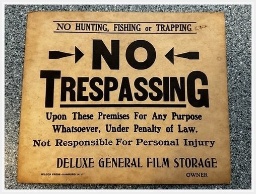 Wilcox Press No Trespassing Sign Deluxe Film Storage Hamburg NJ 1950s Cardstock
